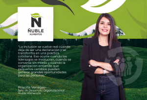 “Para que una política de diversidad e inclusión se transforme en prácticas reales, lo primero es contar con el apoyo decidido de la alta dirección”, señala Priscilla Venegas, Jefa de Desarrollo Organizacional de Ñuble Alimentos. “Hoy nuestros líderes forman parte activa de las iniciativas, se involucran y entregan mensajes claros y coherentes, lo que marca la pauta para toda la organización”.